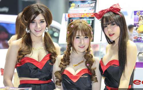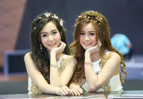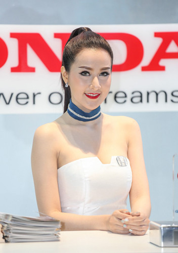 Bên cạnh xe, một đặc sản không thể thiếu của triển lãm này là người đẹp. Dàn người mẫu của mỗi hãng góp phần thu hút khách tham quan.