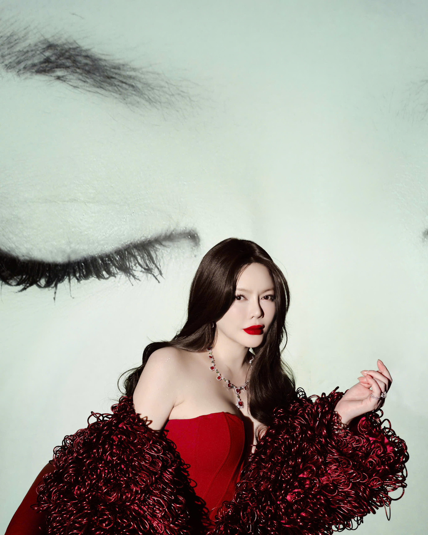 Trong bộ ảnh này, Lý Nhã Kỳ khoe dáng 'nóng bỏng' với phông nền lớn sau lưng là khuôn mặt và đôi môi đỏ thẫm của chính mình. Phông nền độc lạ này đã giúp cho bộ ảnh thêm phần cuốn hút, khán giả cũng có thể xem cận đôi môi trái tim đầy đặn quyến rũ và gương mặt trái xoan mịn màng của người đẹp.