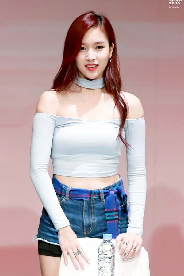 Không những khoe vòng eo thon gọn, đôi chân dài, Mina - thành viên nhóm nhạc tân binh Twice - còn khoe bờ vai quyến rũ.