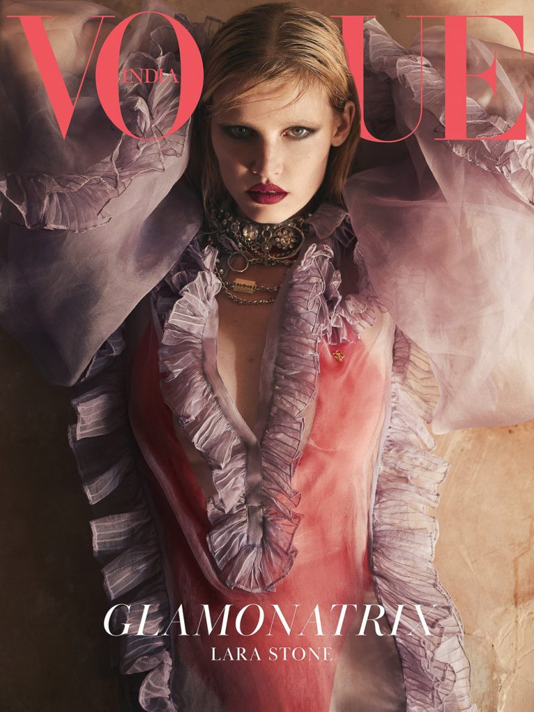 Lara Stone vừa trở thành gương mặt trang bìa tạp chí Vogue Ấn Độ số mới.