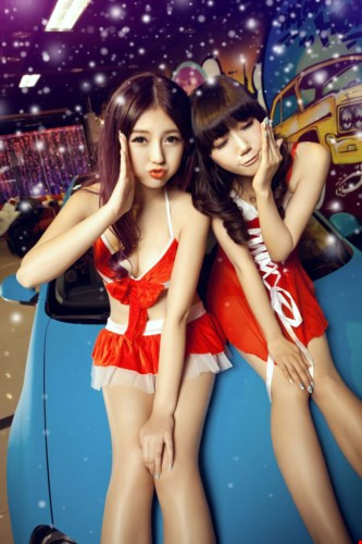 Tạo dáng cùng chiếc Volkswagen Jetta độ, hai mỹ nhân Noel trở nên cực kỳ nóng bỏng trong bộ trang phục đỏ-trắng phong cách Giáng sinh.