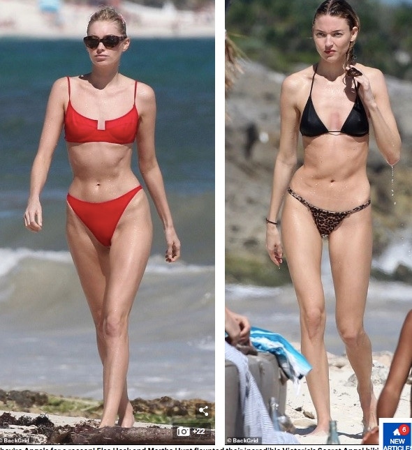 Cùng đi nghỉ với Elsa Hosk còn có nàng mẫu cũng thuộc "quân số" của hãng nội y danh tiếng Victoria's Secret là Martha Hunt, 29 tuổi (phải)