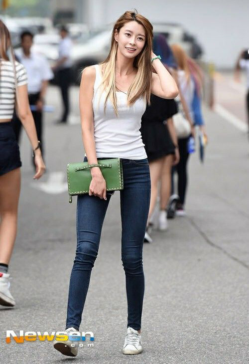 Mỗi khi mặc quần jeans, cựu thành viên Hello Venus đều gây ấn tượng với "cặp giò" thẳng dài không tì vết.