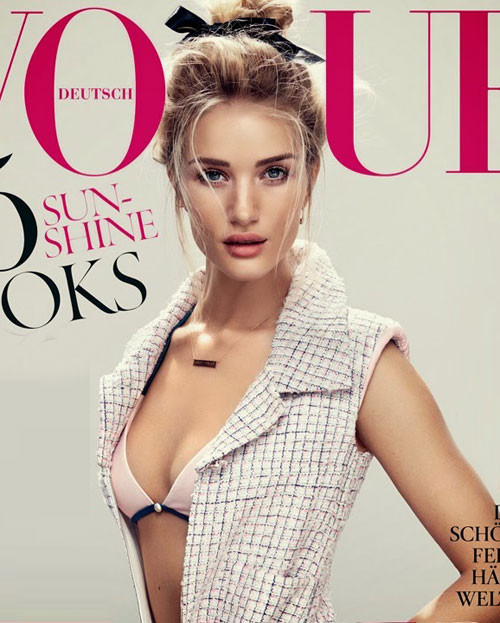 Người đẹp xứ sương mù Rosie Huntington-Whiteley yêu kiều khoe dáng khi thực hiện bộ ảnh cho tạp chí Vogue của Đức số tháng 6.