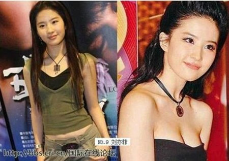 Lưu Diệc Phi luôn biết khoe khéo vòng một đẹp với đầm cúp ngực tại các sự kiện. Tuy nhiên, truyền thông Trung Quốc cũng đặt nghi vấn về khuôn ngực căng tràn sức sống hiện tại của cô.