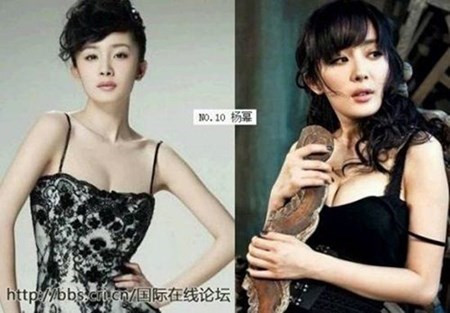 Trước tin đồn này, cả 10 Hoa đán xinh đẹp này đều một mực phủ nhận việc cậy nhờ dao kéo để cải thiện vóc dáng. Trong hình là Chương Tử Di với vòng một "khủng".