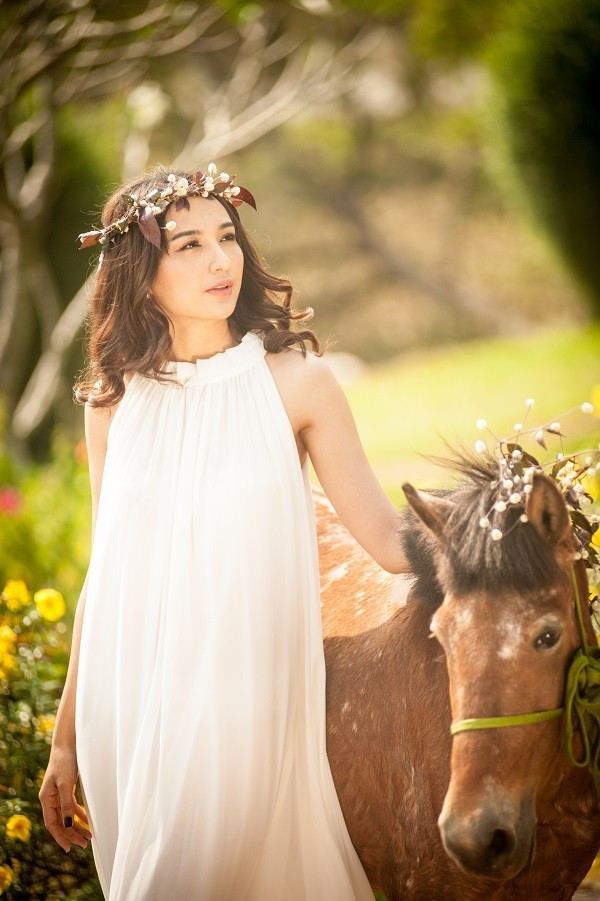 Đầu năm 2014, Hoa hậu Diễm Hương trông nữ tính và hoang dã hơn với concept chụp ảnh cùng ngựa. Bộ ảnh có concept chụp ngoài trời giúp cô khoe khéo vẻ đẹp trong trẻo, duyên dáng khi diện váy trắng, đội vòng hoa lãng mạn.