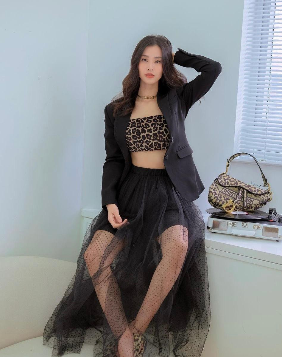 Đông Nhi khiến dân tình trầm trồ với cách mặc vest nữ tính, tôn dáng. Chủ nhân hit Đôi Mi Em Đã U Sầu chọn áo ống da beo ở trong phối cùng chân váy dài. Bên cạnh đó, Đông Nhi sử dụng thêm vòng cổ vàng để tổng thể quý phái, nhẹ nhàng hơn.
