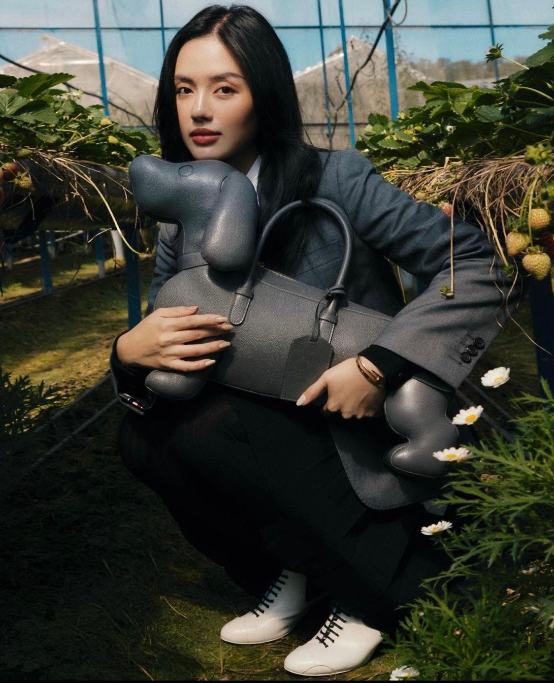 | "Cô Em Trendy" biến hình thành quý cô thời thượng với vest xám, chân váy và vớ dài. Điểm nhấn của outfit nằm ở chiếc túi xách cực "quái", tạo nên tổng thể cá tính, thời thượng. |
