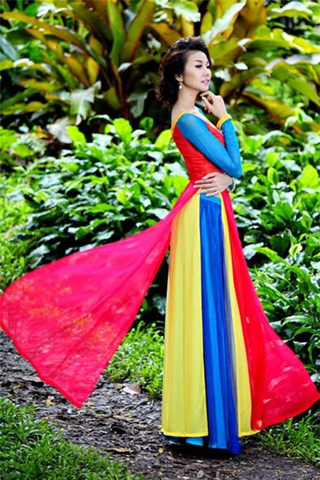 | Trong tà áo tứ thân đậm nét dân tộc, Hoa hậu thế giới người Việt 2011 Lưu Diễm Hương khoe vẻ đẹp dịu dàng và thánh thiện. |