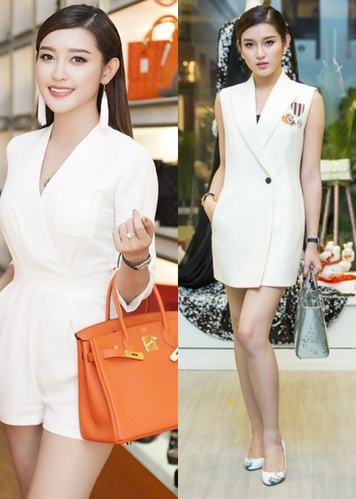 Cũng như Kỳ Duyên, Huyền My mới vào showbiz một năm nhưng không hề "thua chị kém em" về khoản sắm hàng hiệu. Bên cạnh những chiếc túi xách có giá từ 100-300 triệu đồng, cô cũng chọn cả trang phục, giày cao gót và khuyên tai từ những "ông lớn" như Dior, Hermes... để hoàn thiện phong cách.