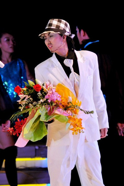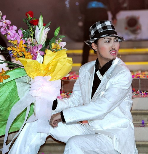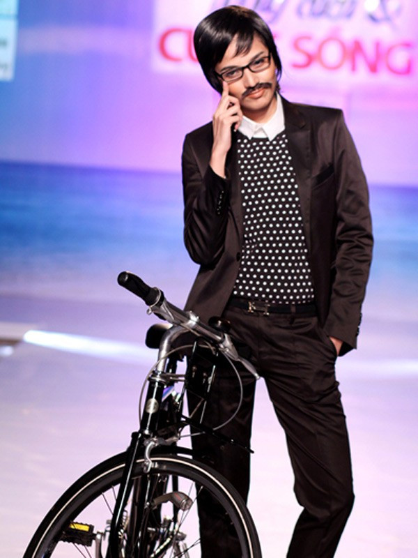 Trong một chương trình, người đẹp dao kéo đã hóa thân làm chàng trai mạnh mẽ và lãng tử. Bộ vest trắng cùng mũ phớt và bộ râu giúp Phi Thanh Vân được chú ý nhiều hơn.