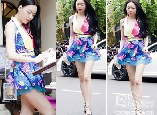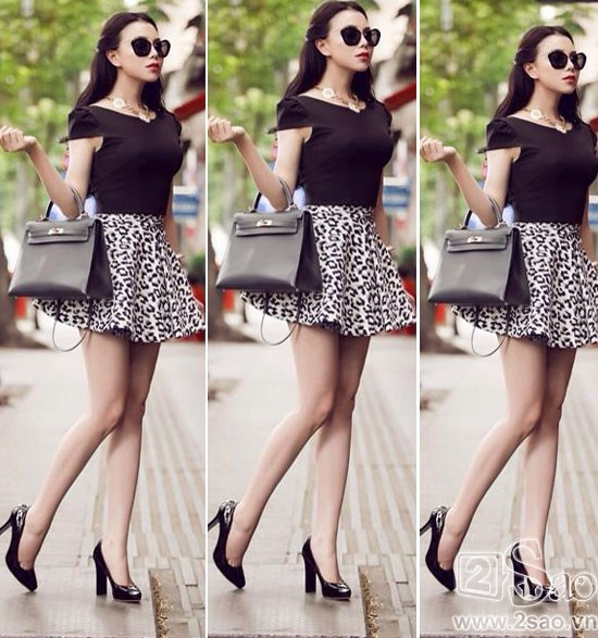 Trà Ngọc Hằng cũng sở hữu đôi chân đẹp và cô biết cách khoe lợi thế của mình với váy ngắn.