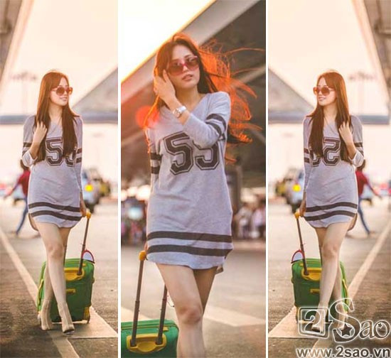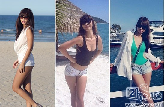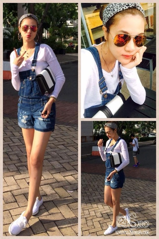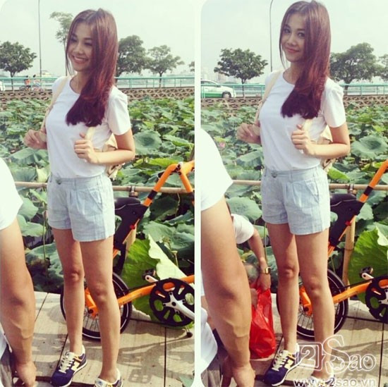 Là siêu mẫu sở hữu chiều cao lý tưởng nên với trang phục ngắn như quần short thì Thanh Hằng chẳng khác gì "cá gặp nước", tha hồ vùng vẫy để phô diễn ưu điểm trên cơ thể.