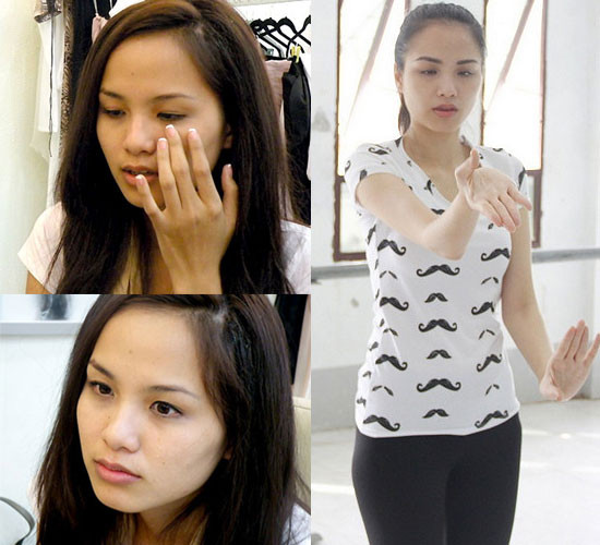 nám ở 2 bên gò má là nhược điểm trên khuôn mặt của cô. Chỉ cần trang điểm nhẹ nhàng, lớp kem che khuyết điểm và dặm lớp phấn mỏng giúp nàng "Út Ráng" rạng rỡ hơn.