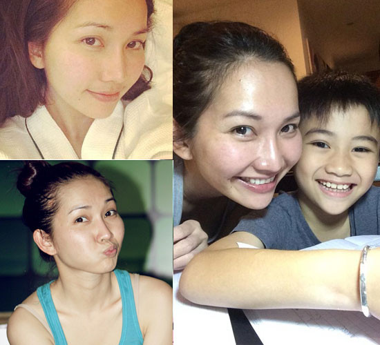 Để mặt mộc Mạc Anh Thư lộ khá nhiều vết nám, tuy nhiên nhược điểm này cũng được khắc phục nhờ lớp phấn.