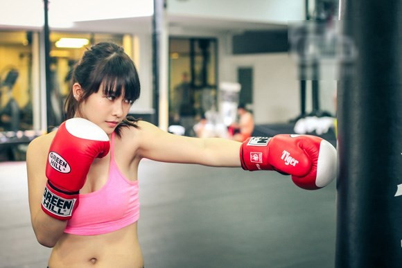 Chi Pu khoe eo thon trong phòng tập boxing. Nữ diễn viên Giọt nước rơi từng chia sẻ: “Sự cá tính mạnh mẽ không chỉ được thể hiện qua cách ăn mặc hay trang điểm, mà cần được bộc lộ qua cơ thể khoẻ khoắn và nguồn năng lượng dồi dào của mìn