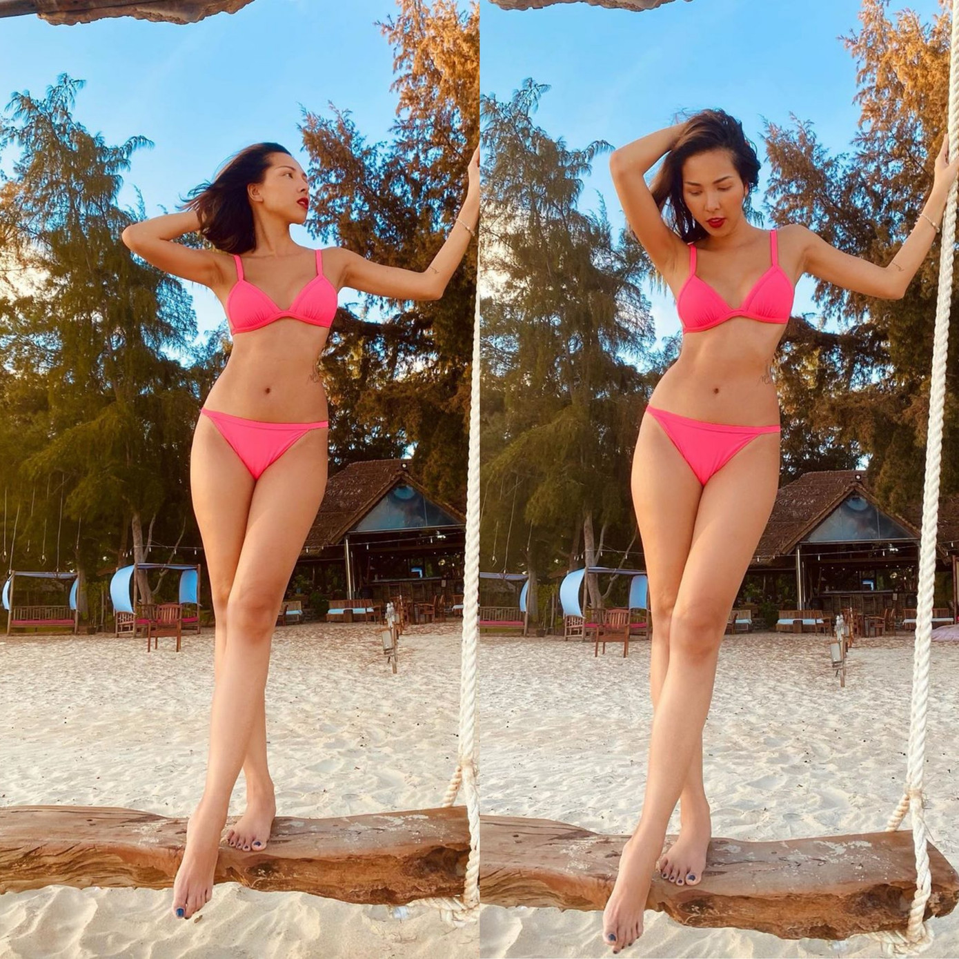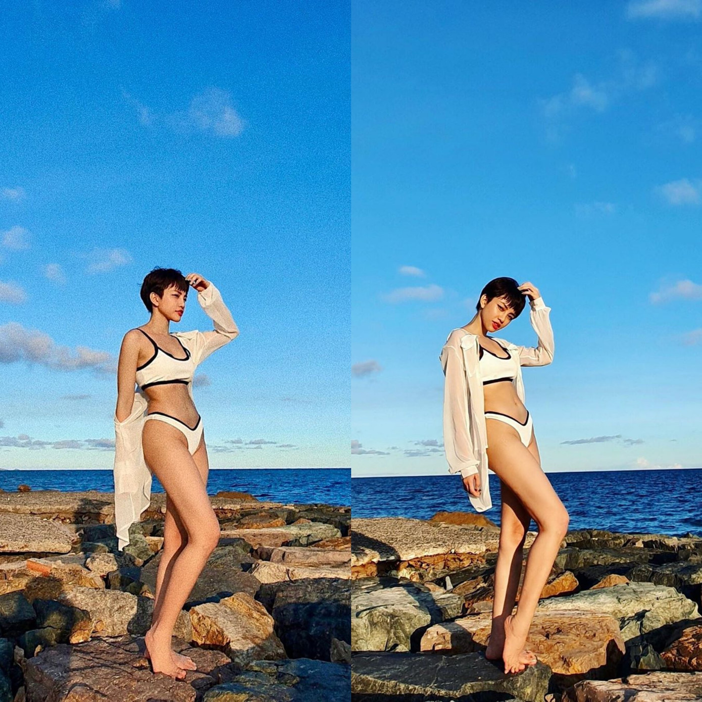Thiên Nga (The Face) gây bất ngờ với mái tóc siêu ngắn và vòng eo siêu đỉnh khi diện bikini bên bờ biển.