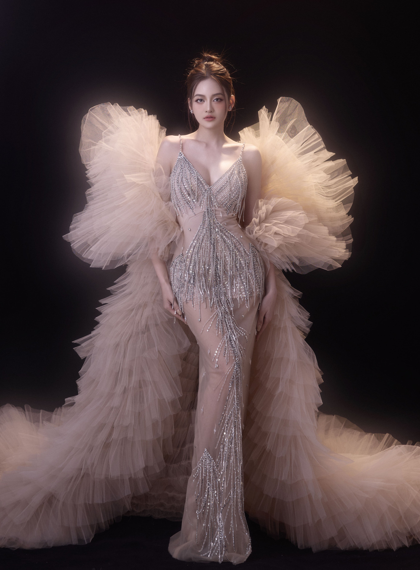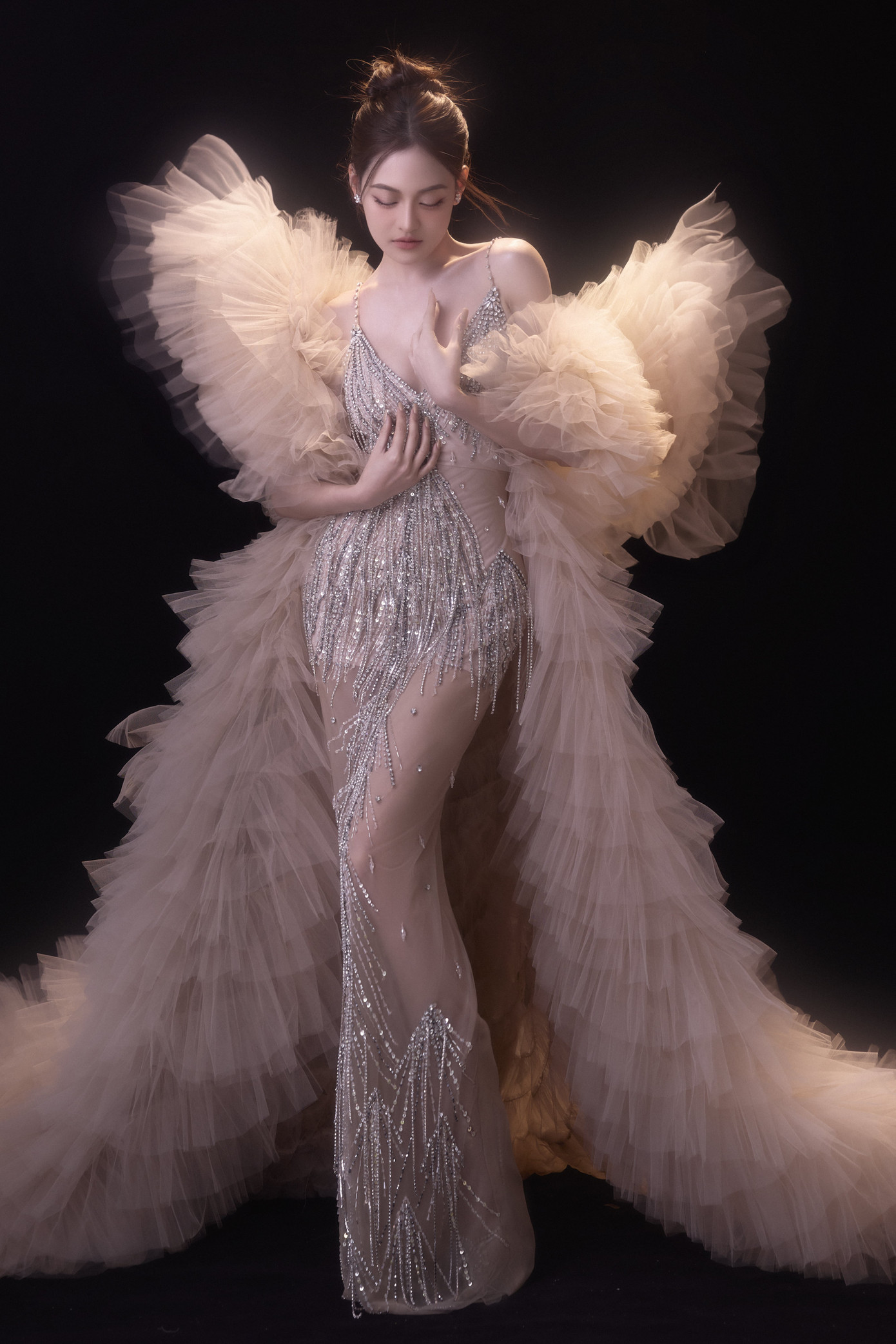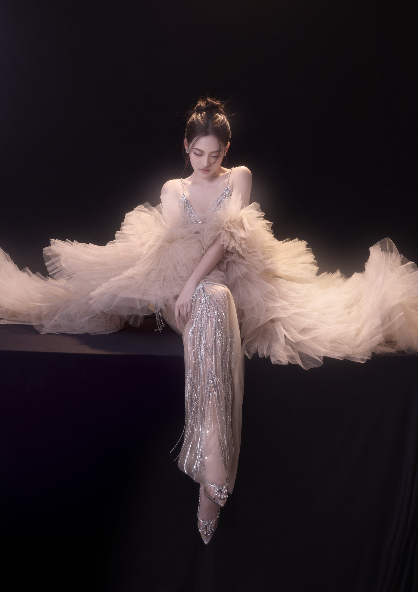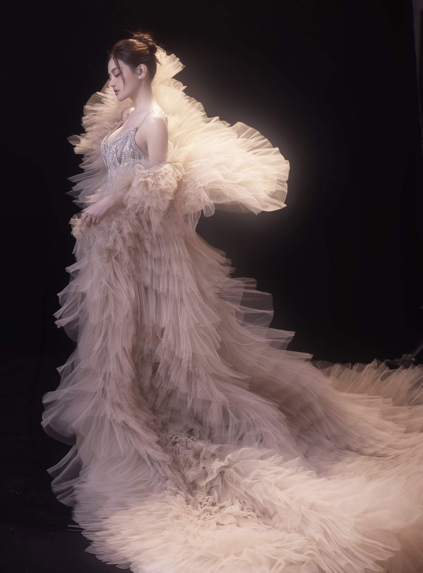 Mỗi dịp sinh nhật, nữ diễn viên Thùy Anh lại thực hiện bộ ảnh đặc biệt như món quà dành tặng chính mình và gửi tặng người hâm mộ. Loạt ảnh năm nay, nữ diễn viên diện chiếc váy hai dây bó sát, đính kết phần tay và đuôi váy làm từ vải voan bồng xòe.