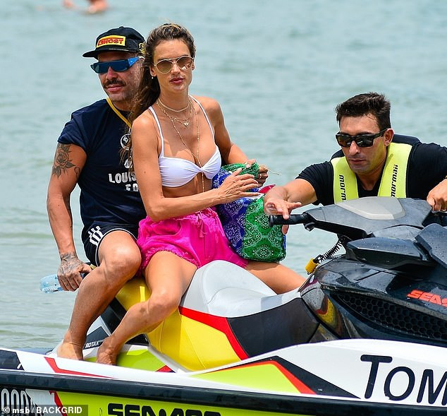 Cựu thiên thần nội y cưỡi mô tô nước trên biển.