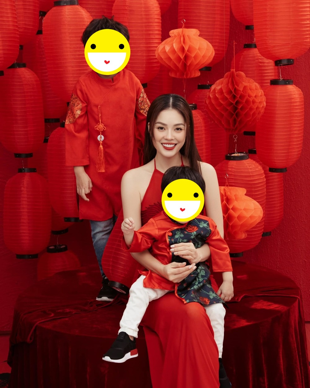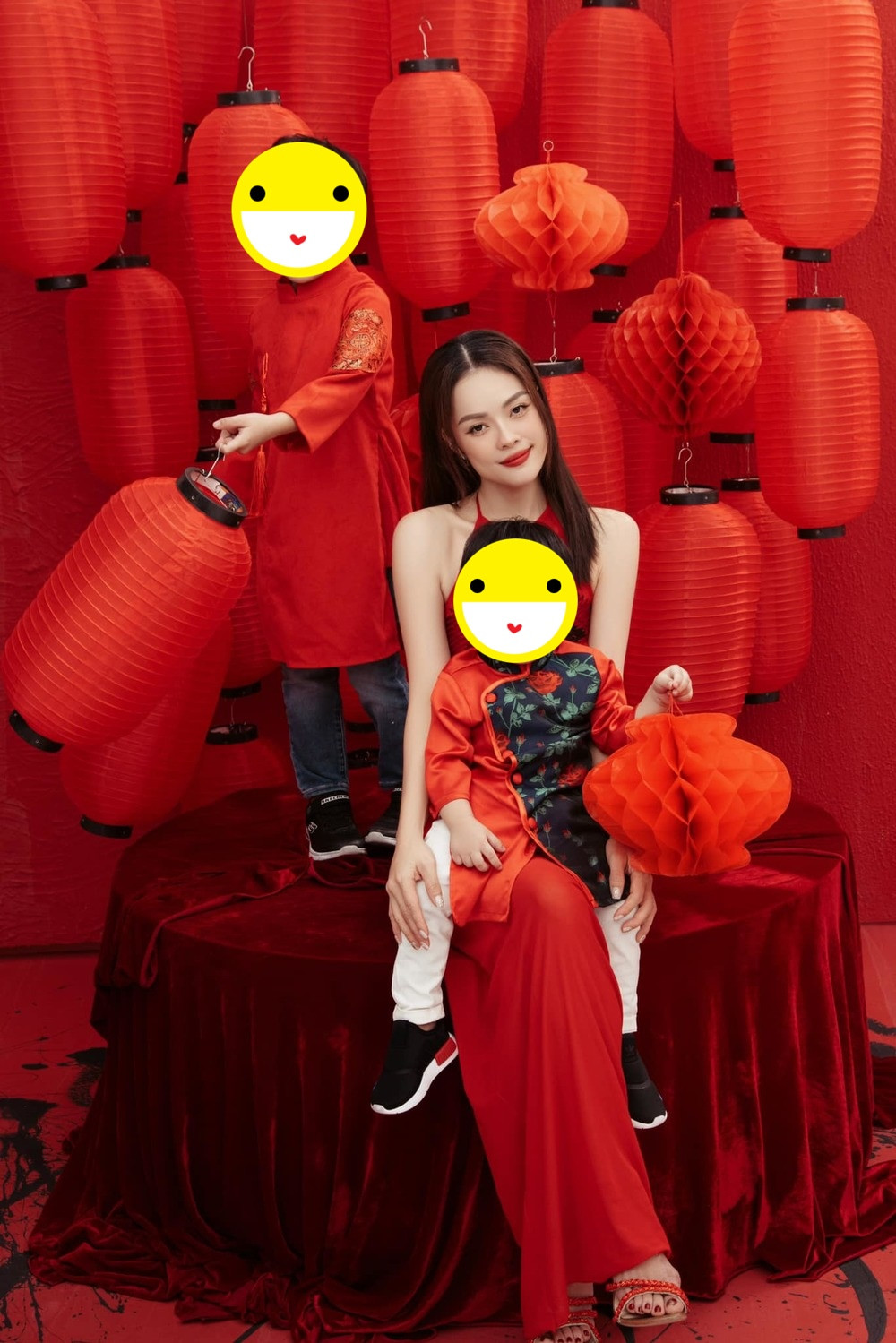 Dương Cẩm Lynh cũng không ngoại lệ, khi cô đăng tải loạt ảnh đón Tết được chụp rất cầu kỳ trong studio trang trí đèn lồng đỏ rực rỡ. Nữ diễn viên cùng hai con trai cũng diện trang phục màu đỏ “nhìn đã thấy Tết” và biểu cảm của Dương Cẩm Lynh cũng rất tươi tắn, rạng rỡ.
