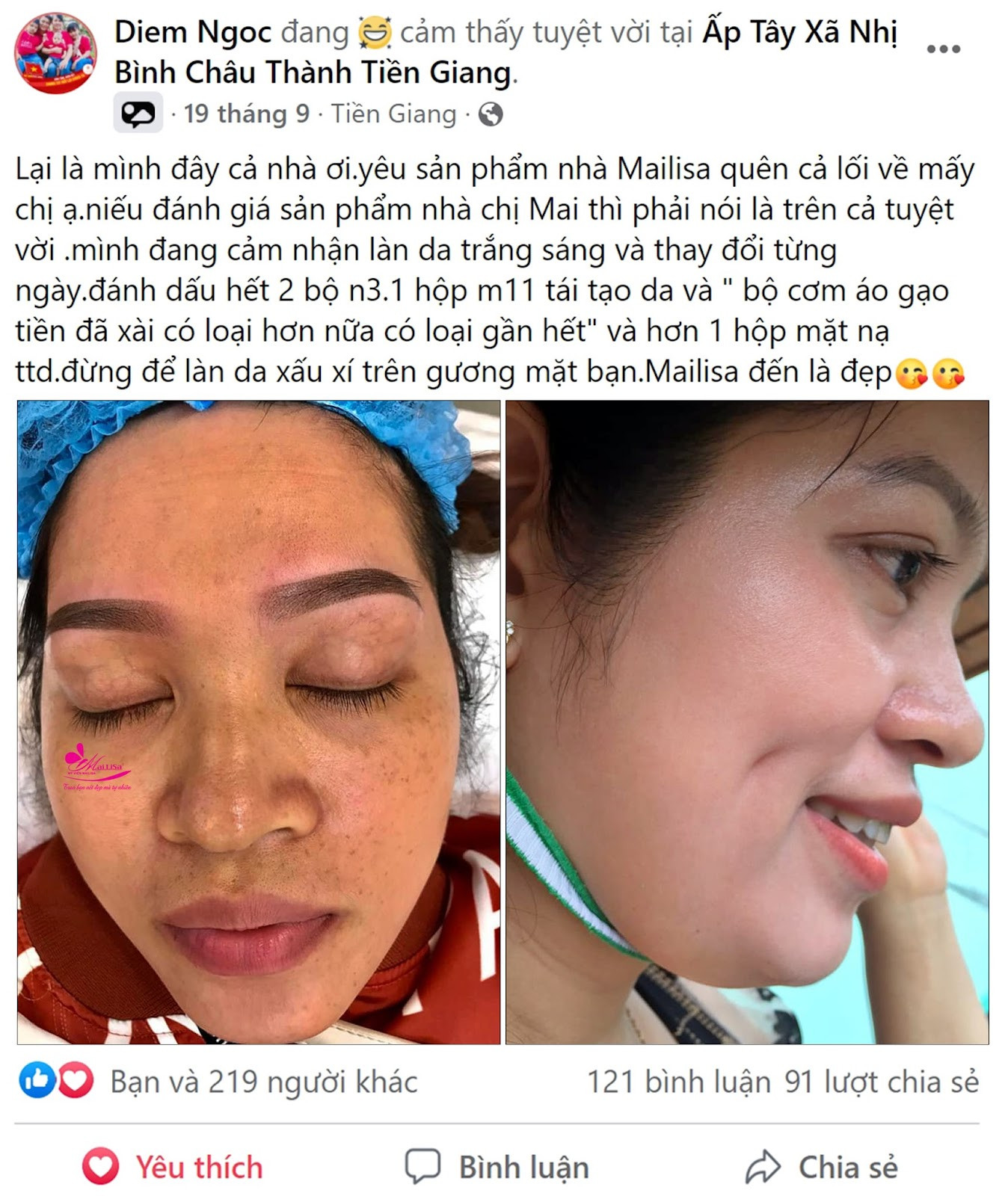 Từng có một làn da đen, sạm, lỗ chân lông to và có nhiều tàn nhang vì thường xuyên phải làm việc đồng áng, nhờ sử dụng bộ sản phẩm N3 - Giúp loại bỏ nám, tàn nhang cùng các sản phẩm dưỡng trắng của thương hiệu Doctor Magic, chị Ngọc Anh (45 tuổi) đã cải thiện làn da của mình một cách rõ rệt. Chị chia sẻ: “Mình là ‘fan cứng’ của Mailisa đã nhiều năm nay. Nhờ mỹ phẩm Doctor Magic của Malisa mà da mình đã trắng sáng và mịn màng hơn rất nhiều. Nhờ đó mình cũng đã tự tin hơn, nhận được nhiều lời khen từ gia đình, hàng xóm hơn. Mình thật sự cảm ơn Mailisa rất nhiều”