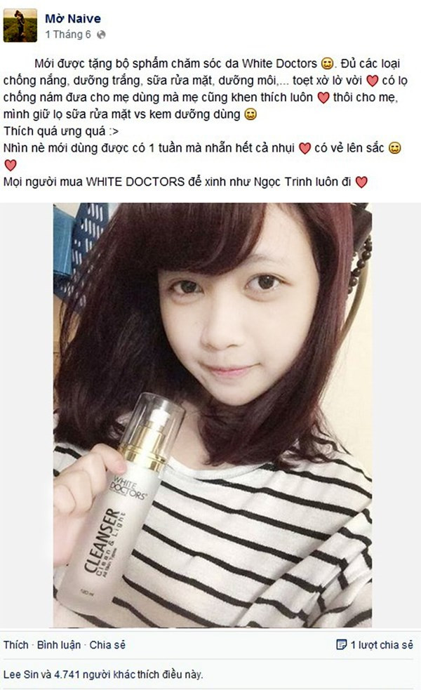Lướt một vòng Facebook, rất nhiều phản hồi từ các bạn trẻ trong đó có những hotgirl nổi tiếng cùng nhau chia sẻ bí quyết giúp mình có làn da trắng trẻo và mịn màng như: Sam, Linh Napie, Lily Luta, Kelly Nguyễn, Vân Navys Hous, Yuu Quỳnh Nhi, Hồng Vân, Trịnh Hồng Quế, An Phương, Ribi Sachi, Hương Mì Gói, Sĩ Thanh, Chi Pu, Huyền Anh ( Bà Tưng ), Kiều Phạm, Emily Nguyễn, Mờ Naive, Trương Quỳnh Anh, Hà Min, Á Hân Lâm, Hoàng Mây, Elly Trần, Đàm Phương Linh … Đó chính là nhờ Mỹ Phẩm White Doctors. Loại mỹ phẩm này đang được các cô nàng yêu thích vì độ hiệu quả và uy tín của sản phẩm.