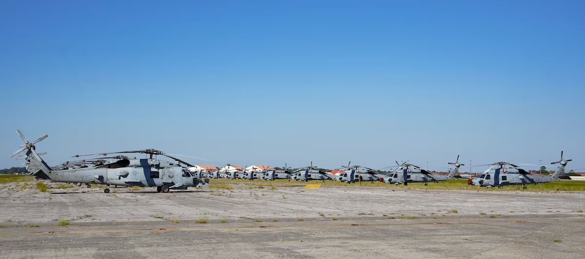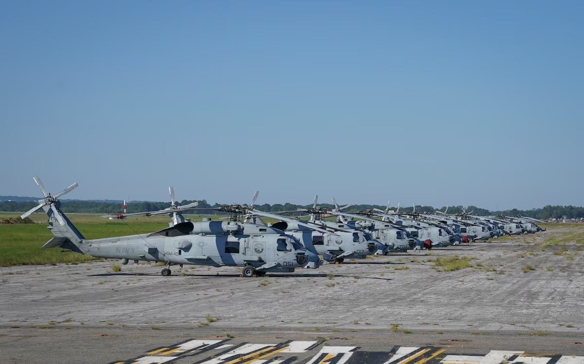 | Phi đội trực thăng MH-60R tập kết tại sân bay quân sự Maxwell ở bang Alabama sau khi di chuyển từ căn cứ Không quân Hải quân Jacksonville. |