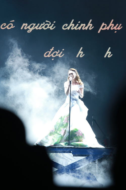 Cô cười xúc động khi thấy 25.000 người cùng hòa giọng, hát vang từng lời ca bài hát 'Chuyện như chưa bắt đầu'.