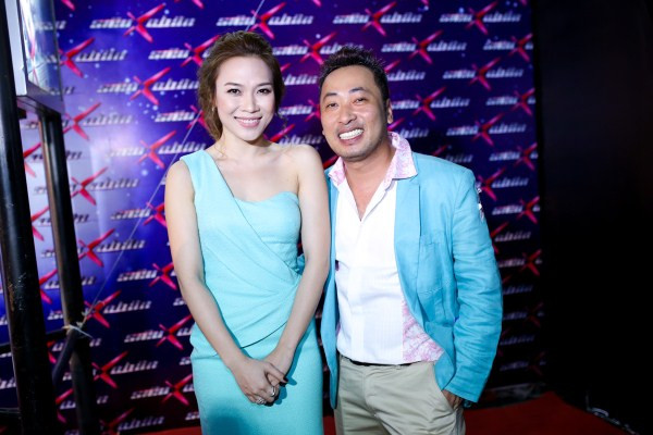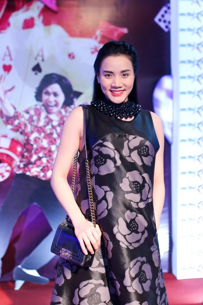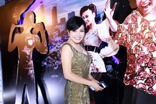 Mỹ Tâm diện đầm lệch vai gợi cảm tới chúc mừng đạo diễn Dũng "khùng". Sự xuất hiện của "họa mi tóc nâu" khiến khán giả khá bất ngờ bởi cô rất ít khi góp mặt trong những sự kiện như thế này