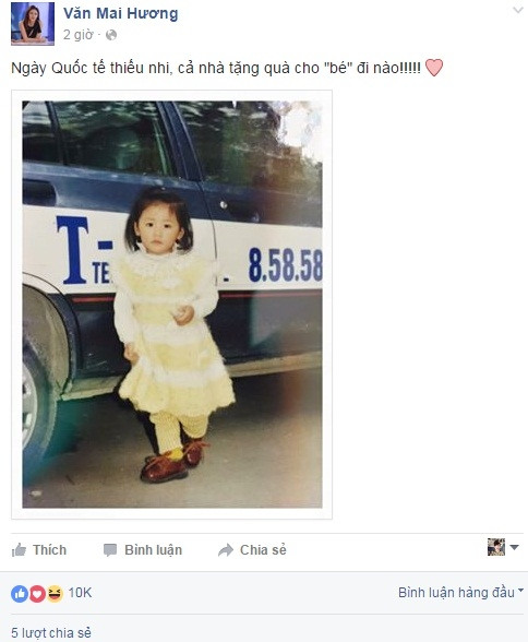 Văn Mai Hương "hưởng ứng" ngày Tết thiếu nhi bằng cách chia sẻ bức ảnh hồi nhỏ của mình.