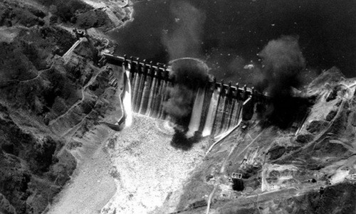 Sau đó, máy bay Mỹ và đồng minh bắt đầu nhắm đến nhà máy thủy điện và 20 đập nước ở Triều Tiên, nơi cung cấp 75% lượng nước để phục vụ nông nghiệp và sản xuất lúa gạo. Tháng 5/1953, không quân Mỹ phá hủy 5 đập nước, gây lũ lụt nghiêm trọng, đẩy hàng triệu người dân Triều Tiên vào cảnh đói khát. Các vụ ném bom còn khiến tình trạng mất điện lan rộng và phá hủy 80% tuyến đường sắt của Triều Tiên.