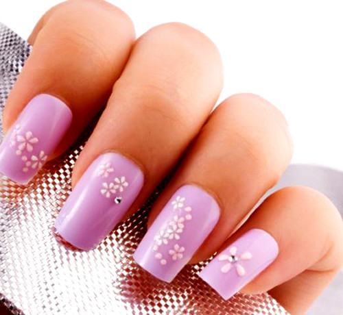 Đây là kiểu nail có sự kết hợp của hoa và hạt đá hoặc pha lê nhỏ rất đơn giản, bạn có thể dễ dàng học theo. Bạn sẽ thật thanh lịch cùng với hạt đá nhỏ đặt giữa những bông hoa nhỏ và đơn giản trong kiểu nail này.