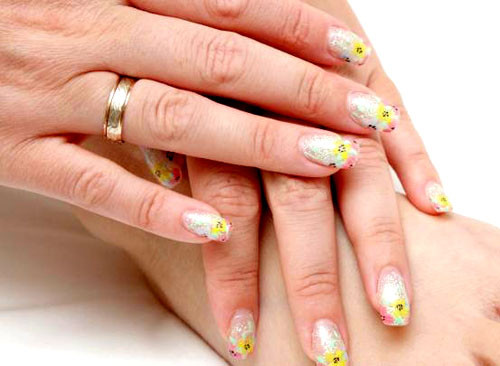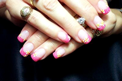 Màu nail hồng không bao giờ là già. Nó phù hợp với mọi lứa tuổi từ 8 tới 80 tuổi. Điểm thêm những bông hoa màu vàng sẽ tạo sự sống động cho nail.