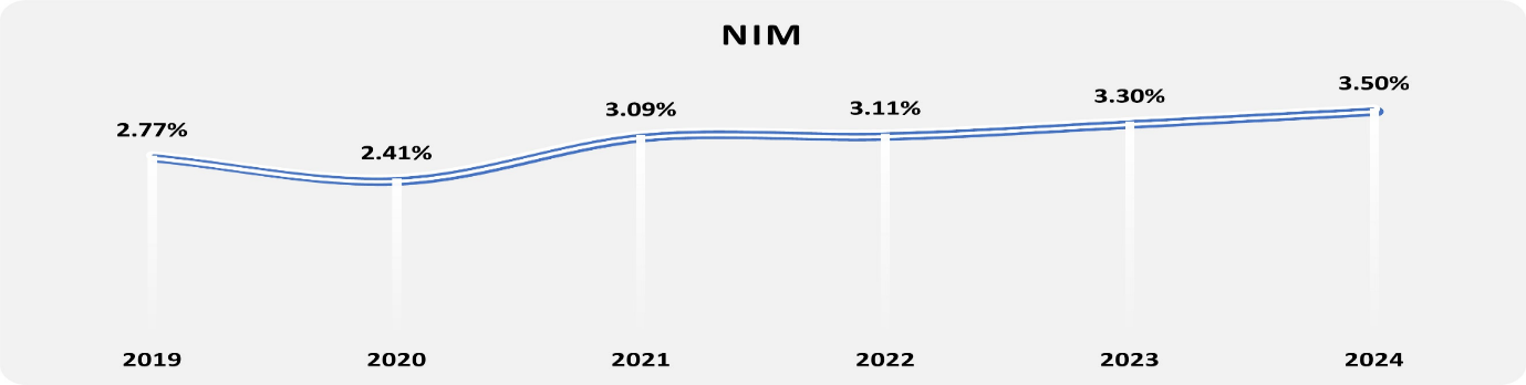 Tỷ lệ NIM của Nam A Bank tiếp tục được cải thiện mức 3.5% (so với 3.3% cùng kỳ năm 2023 )