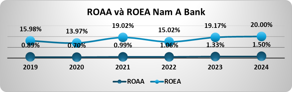Tỷ lệ ROE (lợi nhuận trên vốn chủ sở hữu) duy trì mức 20%, ROA là 1.5%,cho thấy Ngân hàng không chỉ tăng trưởng về quy mô, đạt hiệu quả sinh lời mà chất lượng hoạt động còn được cải thiện.