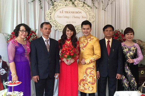 Sau tiệc cưới ở TP HCM ngày 14/3, sáng nay, Nam Cường làm lễ rước dâu ở Hà Nội - nơi gia đình anh sống. Nam Cường sinh năm 1985, quê Đà Nẵng. Lớn lên anh theo gia đình chuyển ra Hà Nội sống. Anh vào Sài Gòn lập nghiệp năm 2003.