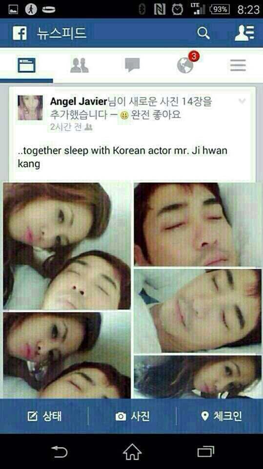 Nam diễn viên Kang Ji Hwan vừa bị một cô gái người Philippines tung một loạt ảnh giường chiếu lên trang facebook cá nhân của mình. Những bức ảnh được chụp từ những góc khá nhạy cảm kèm dòng chú thích: "Vừa ngủ với nam diễn viên Hàn Quốc Kang Ji Hwan." Vì là một nam diễn viên hạng A nổi tiếng của Hàn nên những hình ảnh này đang khiến dư luận xôn xao.