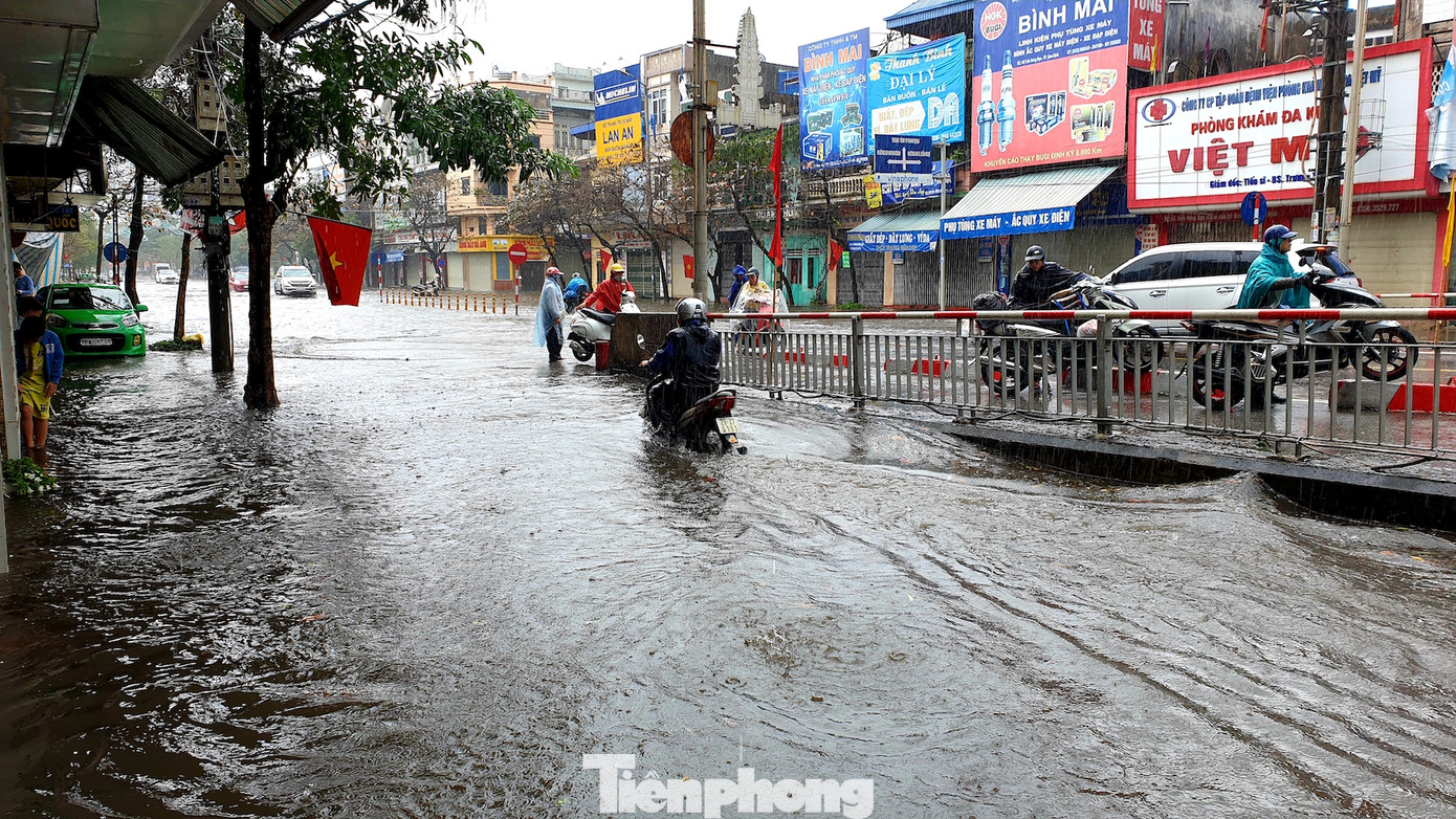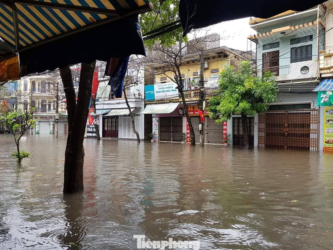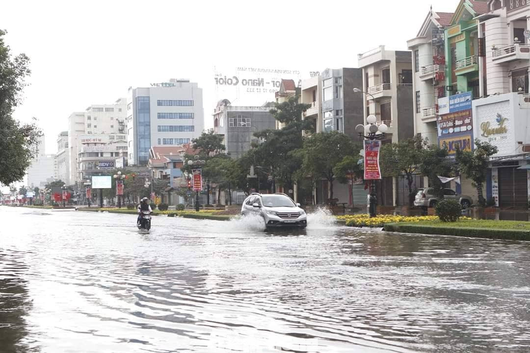 Các phố chính như Lê Hồng Phong, Trần Hưng Đạo, Quang Trung, Hai Bà Trưng, Bà Triệu, Bến Thóc... đều bị ngập hết phần lòng đường, nước tràn vượt vỉa hè. Nhiều nhà dân chưa tôn nền bị nước tràn qua cửa, biến lòng nhà thành ao.