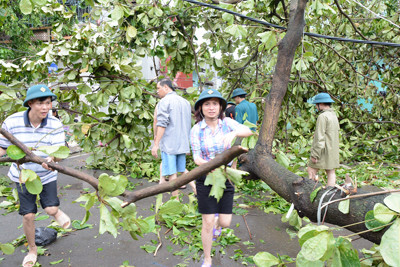 Ngay sau bão tan, người dân thành phố Nam Định đã tiến hành thu dọn cây đổ.