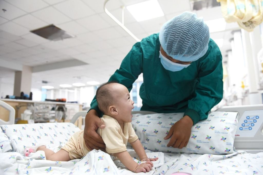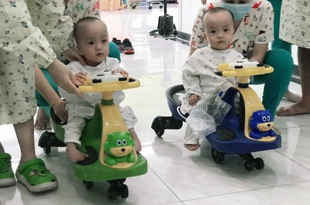 Tính đến nay, cặp song sinh Trúc Nhi - Diệu Nhi đã trải qua 50 ngày sau ca phẫu thuật tách rời. Các bé đang bước vào giai đoạn phục hồi toàn diện mới (Ảnh: BVCC)