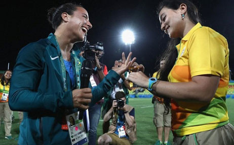 Ngày 12/8 vừa qua, Isadora Cerullo, 25 tuổi, nữ VĐV của đội tuyển ruby Brazil được bạn gái Marjorie Enya cầu hôn ngay tại lễ trao giải Olympic Rio 2016.