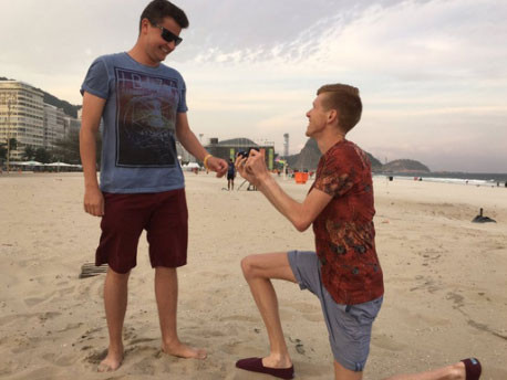 Ngày 16/8 vừa qua, Tom Bosworth, 26 tuổi, VĐV đi bộ người Anh, có màn cầu hôn ấn tượng với bạn trai Harry Dineley tại bãi biển Copacabana.