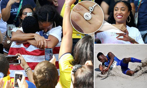 Ngày 16/8 vừa qua, sau khi biết mình đoạt huy chương bạc, vận động viên nhảy 3 bước người Mỹ Will Claye, 25 tuổi, bất ngờ tiến lên khán đài, đến bên cô bạn gái Queen Harrison, một cựu vận động viên điền kinh Olympic, quỳ xuống, giơ chiếc nhẫn kim cương và cầu hôn.