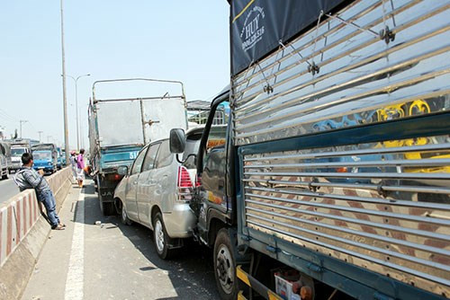 Xe anh Phúc lao thẳng vào ba ô tô cùng chiều phía trước. Lúc này, xe tải chạy từ phía sau không kịp xử lý đã tông ô tô bảy chỗ khiến năm phương tiện dính chùm nhau tạo nên chuỗi tai nạn liên hoàn nhưng rất may không có thiệt hại về người.