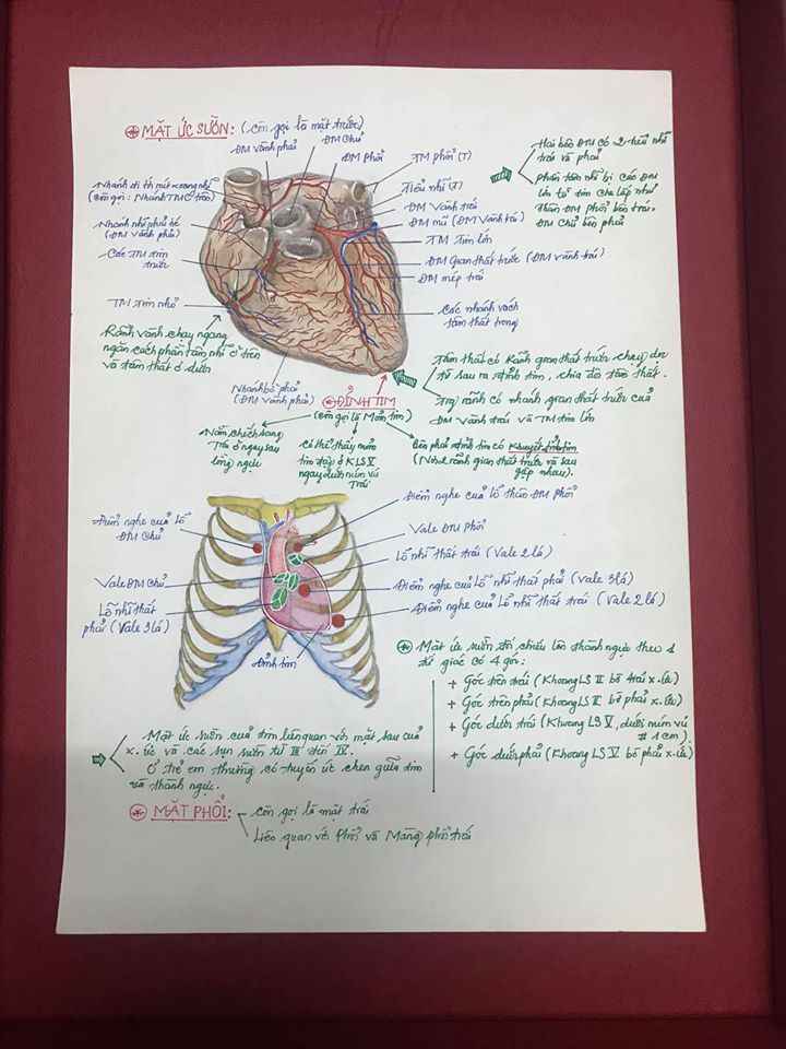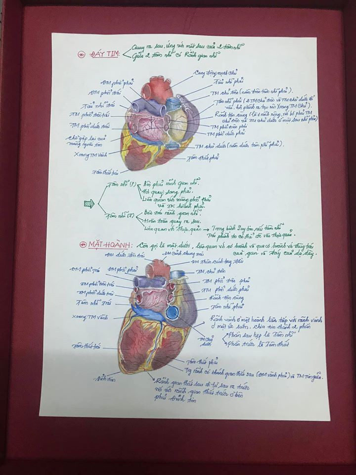 Bức vẽ giải phẫu tim mạch được tô màu đẹp sống động như in từ tạp chí khoa học.