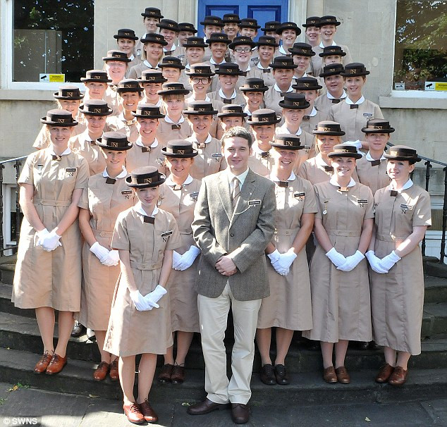 Bây giờ, trong khi các bạn học nữ của mình mặc đồng phục váy kem cổ điển với mũ nâu, anh bạn sẽ mặc vest màu ghi, áo sơ mi màu kem, cà vạt và quần màu be khi đến trường.