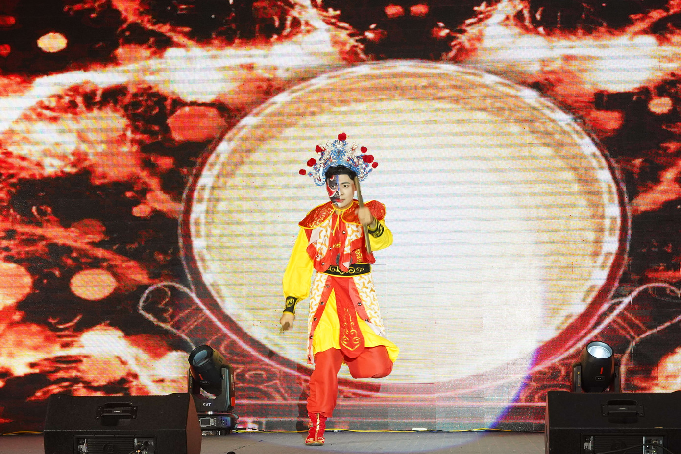 | Bách cùng nữ MC dẫn chương trình tại một sự kiện giao lưu. |