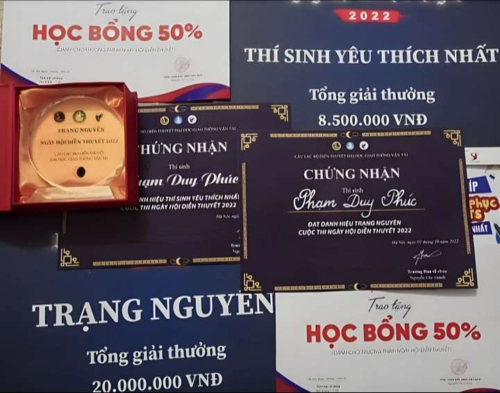 - Quán quân và là thí sinh yêu thích nhất của một cuộc thi “Ngày Hội Diễn Thuyết 2022: Khuyết”