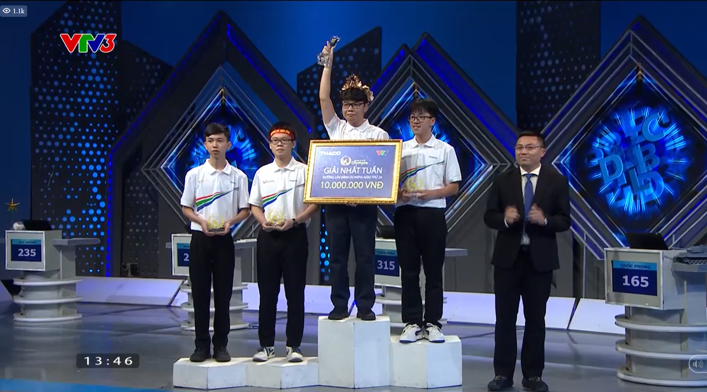 Về nhì với 235 điểm là thí sinh Nguyễn Huy Hoàng (trường THPT Hoàng Hoa Thám, Đà Nẵng), về thứ ba là thí sinh Nguyễn Minh Dũng (trường THPT Đông Sơn 1, Thanh Hóa) với 210 điểm và về cuối là thí sinh Phạm Quốc Phong (trường THPT chuyên Biên Hòa, Hà Nam) với 165 điểm.